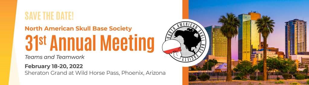 The North American Skull Base Society (NASBS) will hold its 31st Annual Meeting on February 18-20, 2022, at Sheraton Grand at Wild Horse Pass in Phoenix, Arizona. The scientific program committee has developed an outstanding program, and we are excited to bring “Jeopardy” back to the event. Special sessions will include expert debates, hot topics, and video sessions. The NASBS meeting also features Dueling Dissections with experts demonstrating open and endoscopic surgical approaches through cadaveric dissection. Faculty for this program will also present 3D anatomy followed by pertinent diagnostic imaging of the area. We will have our pre-meeting hands-on two-day dissection course on Feb 16th-17th, 2022. The hands-on dissection course will offer didactics and cadaveric dissection with modules taking participants through open and endoscopic approaches to the skull base. This course is led by leaders in skull base surgery and is designed to promote anatomical understanding and practice of complex approaches to the skull base. There will be a one-day Skull Base Reconstruction Symposium that will cover all the nuances related to the challenge of reconstruction, from minor spontaneous defects to large skull base approaches. We will also have a global skull base surgery symposium designed to include the participation of the international skull base masters. Due to the pandemic, NASBS is evaluating the possibility of having the Global Skull Base symposium as a hybrid (virtual and in-person). We are also including a “Skull Base Art” activity, where the participants will have the opportunity to color 3D printed skull bases expressing the artistic skills present in all of us. At this point, we are planning on an entirely in-person meeting with numerous exhibit booths from industry partners. Information for all the above can be found at www.nasbs.org.