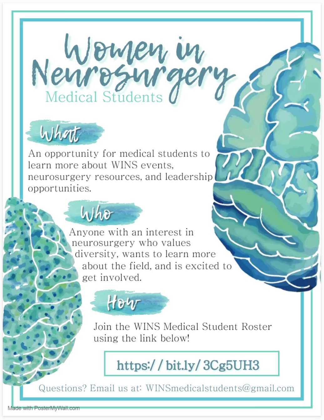 The WINS Medical Student Working Group was established in January 2022 to formalize pathways for leadership, mentorship and research opportunities, while also identifying ways in which medical students can help advance the mission of WINS. Alexandra (Sasha) White and Caren Stuebe presented an initial group structure at the WINS Executive Committee Meeting in April, which was received with enthusiasm and helpful criticism. The WINS Medical Student Working Group is overseen by several faculty and resident members, including Dr. Sarah Woodrow, Dr. Nicole Bentley, Dr. Ariana Barkley, Dr. Sheri Dewan, Dr. Alia Hdeib, Dr. Nina Yoh, PGY-4 and Dr. Cylaina Bird, PGY-1. The group includes medical students from across the United States. The primary initiatives this year include outreach, social media engagement and facilitating mentorship. Next steps are recruiting medical students to leadership roles and presenting an update at the CNS Annual meeting in October. Stay tuned for updates in the newsletter and on social media. Email the group at WINSmedicalstudents@gmail.com if you want to connect or have any questions.